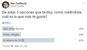 虽然卡西利亚斯本赛季仍然在波尔图注册了参赛资格,但是由于心肌梗塞,卡西至今仍在养病。据西班牙《球报》报道,卡西将在今年12月接收检查,以便确定是否可以继续从事足球运动。不过,卡西仍然关心足坛,对于曾经的老东家皇家马德里更是忧心忡忡,对皇马目前的困境,卡西在推特上发布了一项投票,让网友选择自己希望皇马...也许您还喜欢:世界杯直播 亚洲杯直播 欧洲杯直播 足球直播