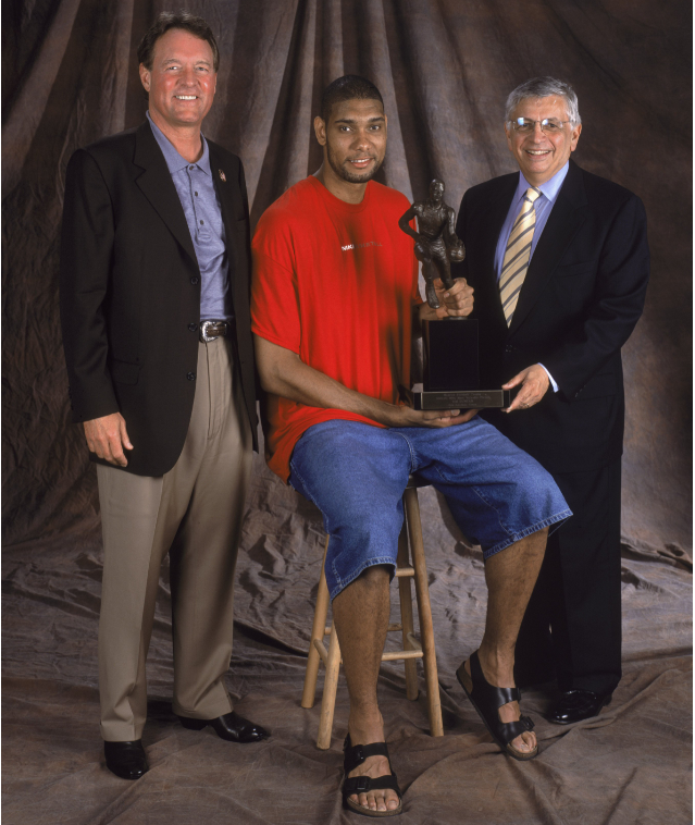 2002年邓大爷穿着T恤、牛仔短裤和凉鞋,拿着MVP奖杯与大卫-斯特恩合影,可以说是MVP里的一股泥石流了。
