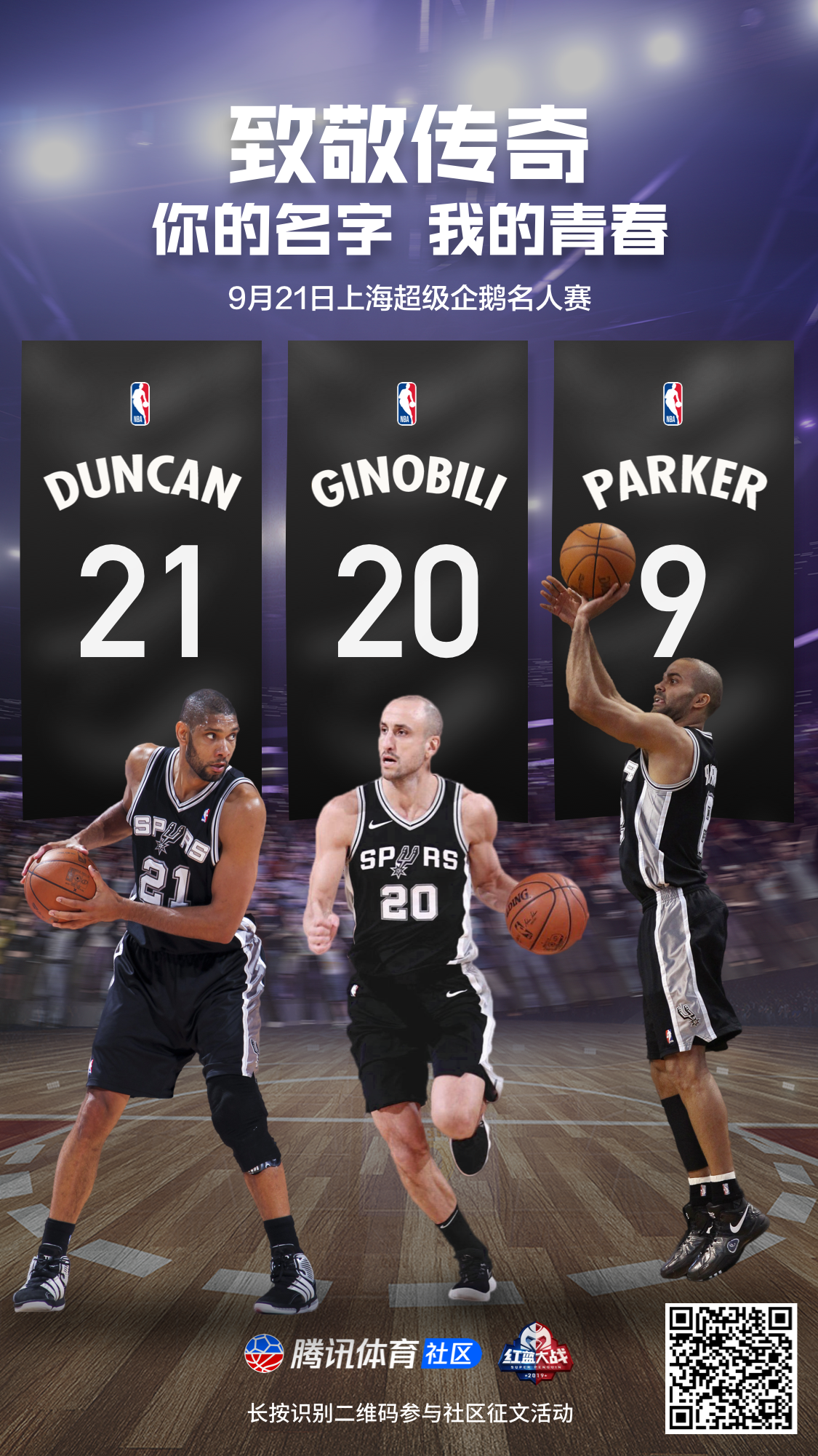 9月21日,马刺传奇球星托尼-帕克和马努-吉诺比利将参加腾讯体育超级企鹅篮球名人赛,他们将再次披上战袍踏上球场,带我们一起找寻青春里的那些记忆!