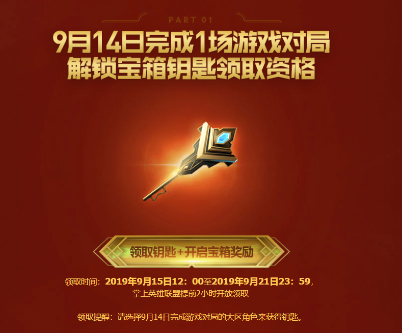 但是在高兴之余,看看自己是否有在9月14日登录游戏呢?必须当天登录游戏才有开启皮肤宝箱的钥匙。