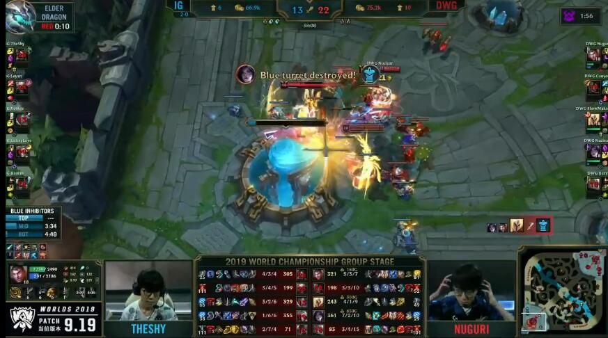 在刚刚结束的S9全球总决赛小组赛第三日的比赛中,ig迎战前教练所带领的lck三号种子dwg,在游戏的前期,dwg在打野canyon的带领下频频发起下路进攻拿到优势。