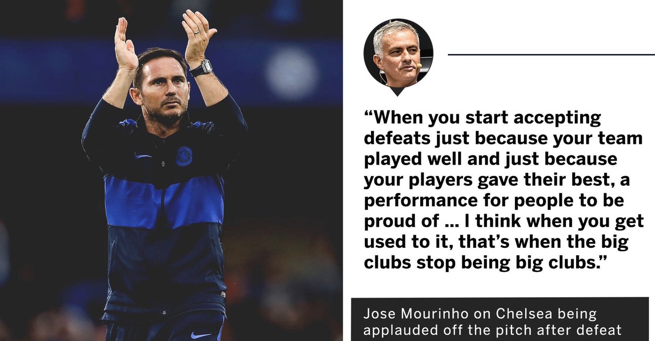 兰帕德在昨天切尔西输给利物浦的比赛结束后说,切尔西已经尽力了。他认为在场面上,切尔西不输利物浦,球员在斗志上胜过利物浦。但穆里尼奥不这样认为,他说,“当你开始接受失败,仅仅是因为球队踢的不错,仅仅是因为队员拼尽全力,踢出了令人骄傲的表现……我觉得自从你接受了这个设定,大球队就不再是大球队。 ???”言下之意就是,切尔西输了就是输了,不要找借口。你觉得呢?