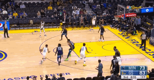 主场对阵森林狼的季前赛,库里火力全开,在25分钟的出场时间里就命中了6个三分!