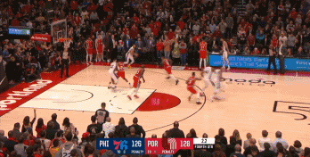 本场比赛最后时刻惊心动魄!开拓者安芬尼西蒙斯接到利拉德传球命中三分反超76人,只留下2秒时间。