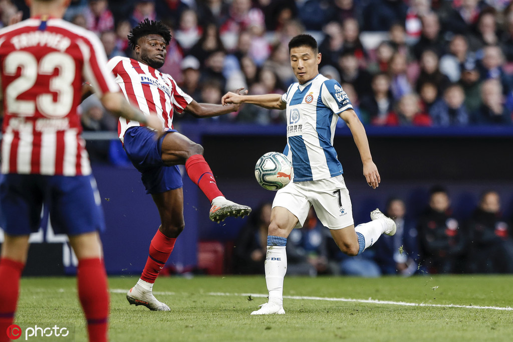 西甲第13轮,西班牙人客战马德里竞技。比赛第20分钟,西班牙人传中,武磊禁区内得球之后,稍作调整后左脚抽射,皮球稍稍偏出球门。