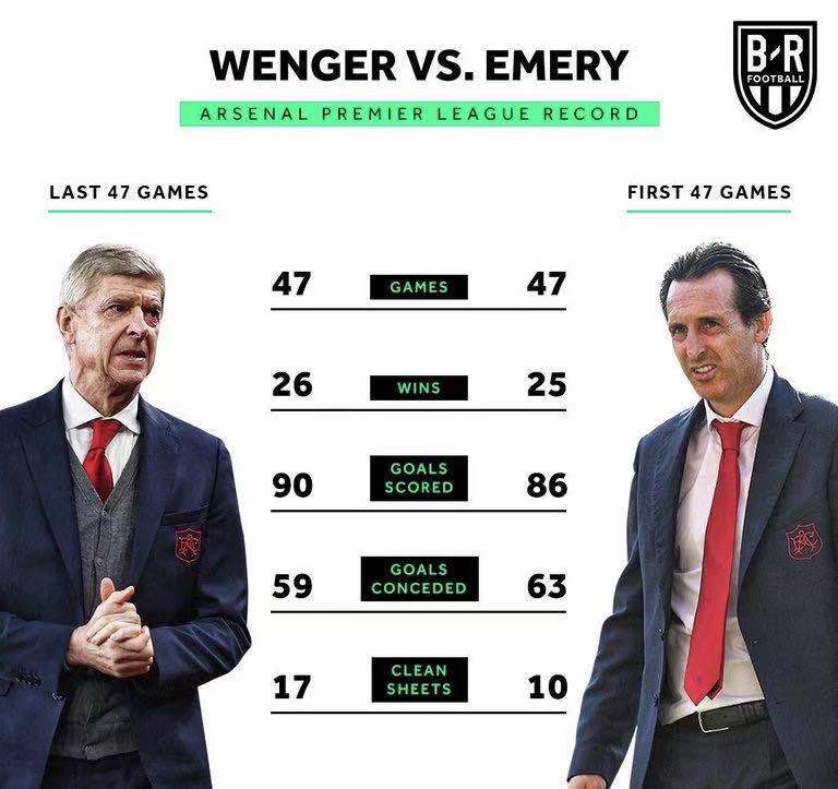其实,数据早已说话,埃梅里执教至今的47场比赛里,成绩并不比温格执教末期的最后47场比赛好。无论是在胜率、进攻,还是防守,温格都做得比埃梅里好。