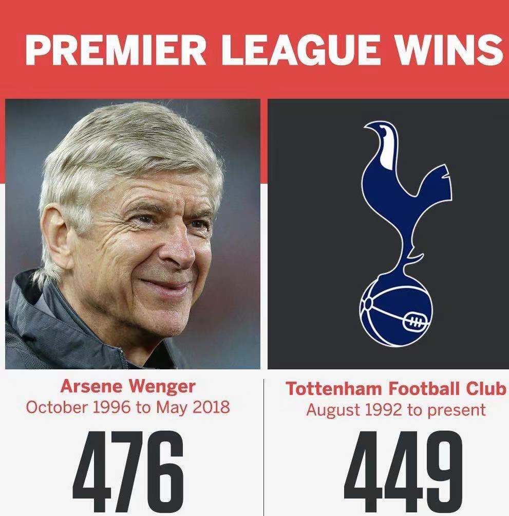 这周刚过70大寿的老教授,在英超的胜场是476场。而热刺呢,从1992年改制以来,至今也仅赢下449场英超。