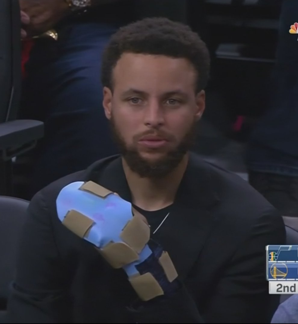 今日,勇士主场迎战爵士。刚做完手术没几天的库里现身球馆,左手包裹的严严实实。