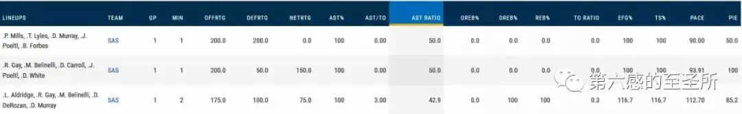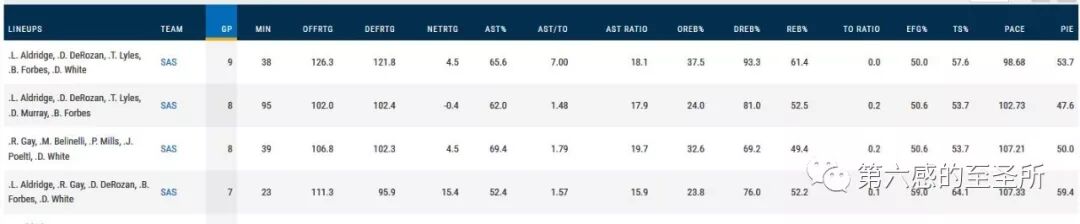 高阶数据显示,马刺除了篮板,其他各项指标,都在联盟中上游晃荡。甚至提速后的节奏也只有联盟第十四位,并没有撒丫子不管不顾的跑的很快。和勇士、公牛是比邻。