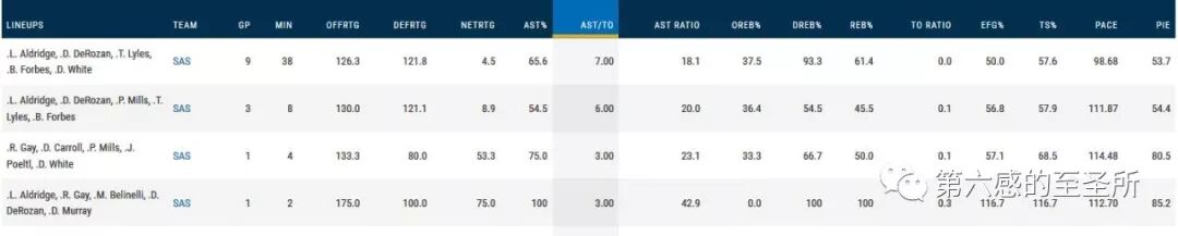 本赛季助攻比率最高的阵容: