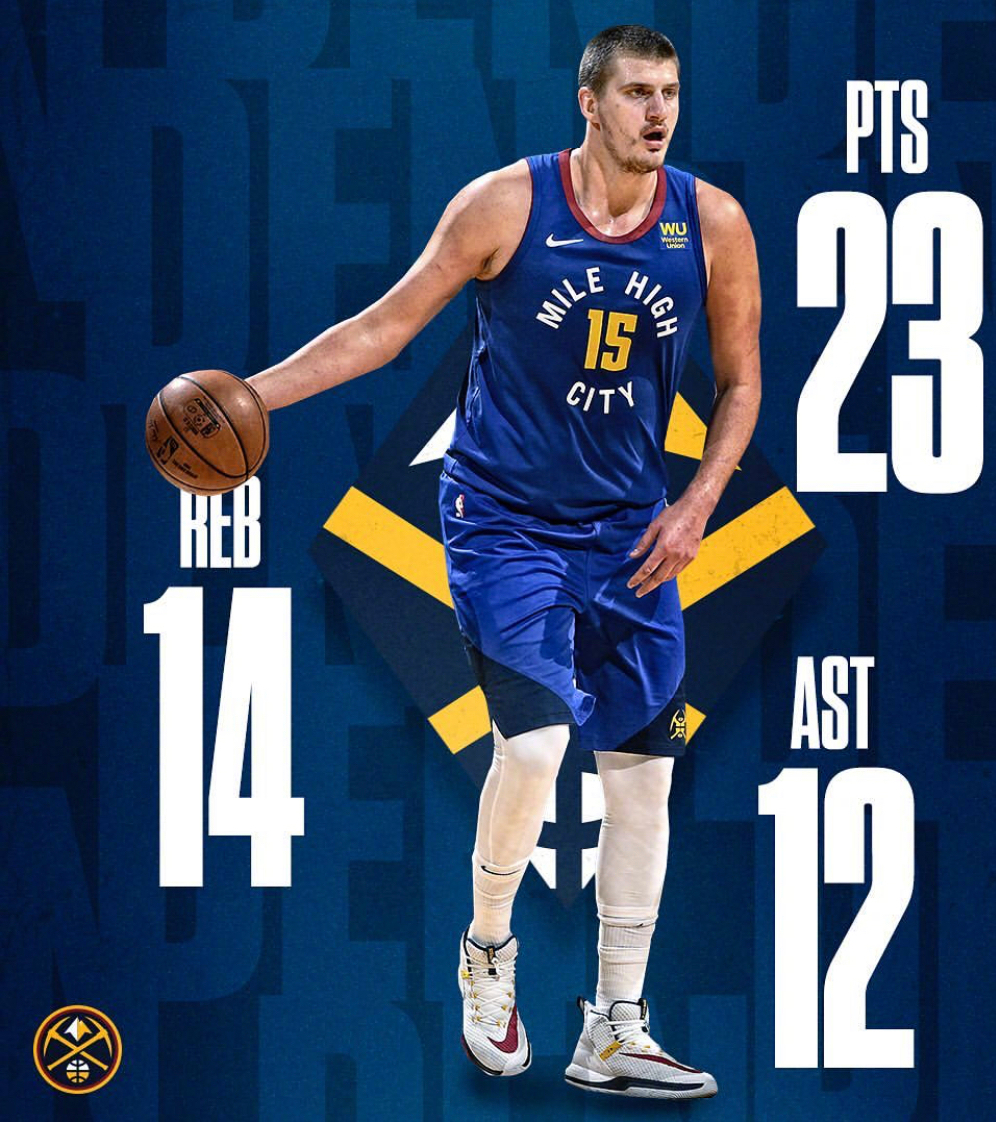 这是约基奇生涯第29次三双,超越乔丹的28次。