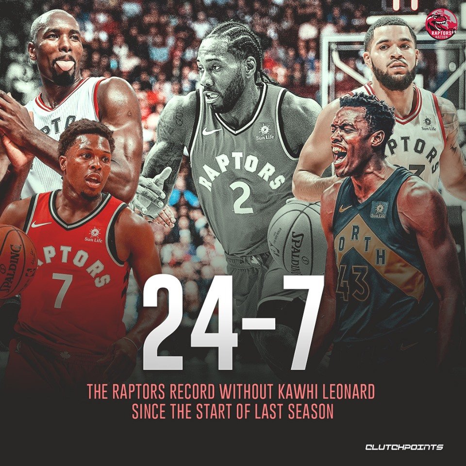 所以,从上赛季起至今猛龙在没有莱昂纳德时的战绩为24胜7负。其中上赛季17胜5负,本赛季至今7胜2负。
