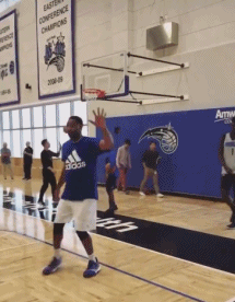 今日,麦蒂回到老东家魔术队指导年轻人训练。