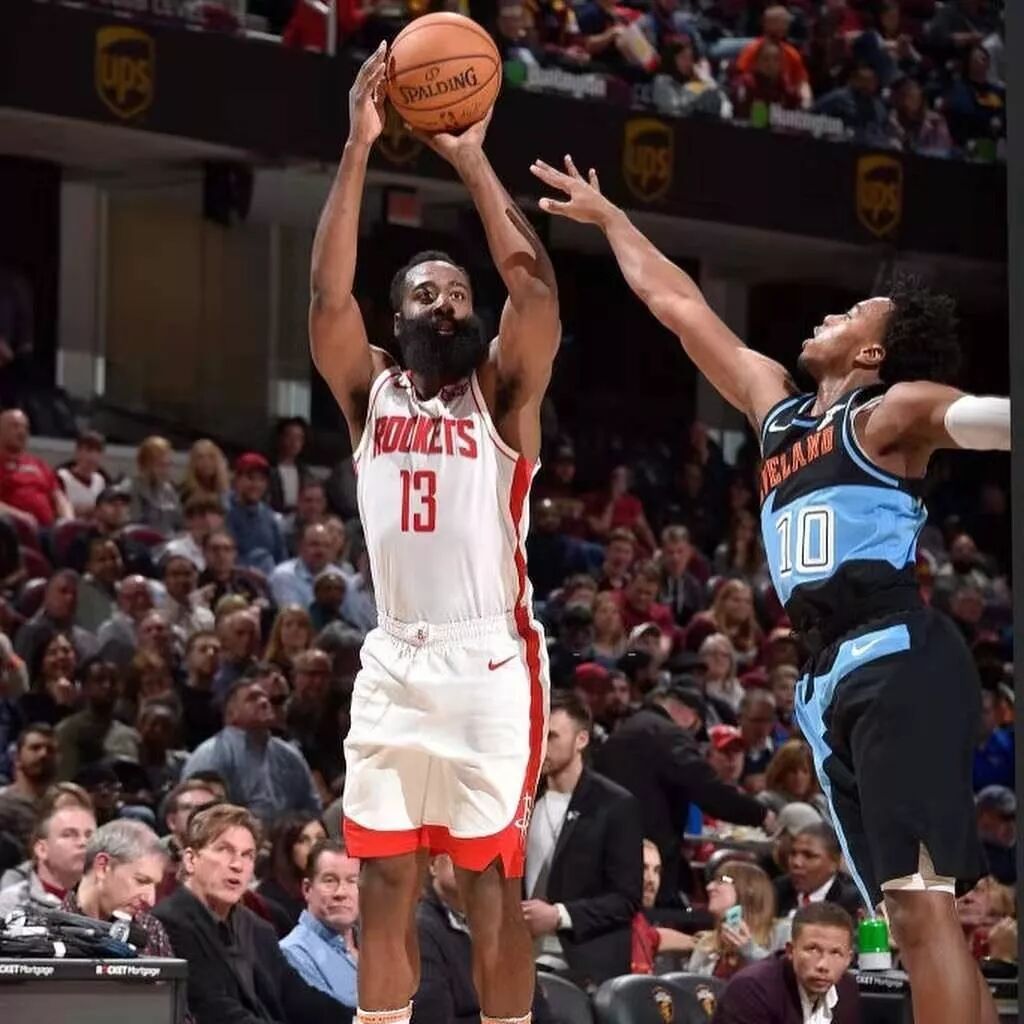 哈登命中3记26英尺之外的顶投三分和一记内线抛投,