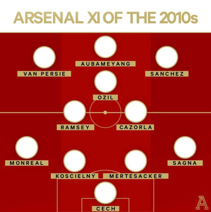 门将:切赫前场:范佩西 奥巴梅扬 桑切斯中场:拉姆塞 厄齐尔 卡索拉后场:蒙瑞尔 科斯切尔尼 默特萨克 萨格纳这套阿森纳2010年以来的最佳阵,大伙儿认同吗?也许您还喜欢:世界杯直播 亚洲杯直播 欧洲杯直播 足球直播
