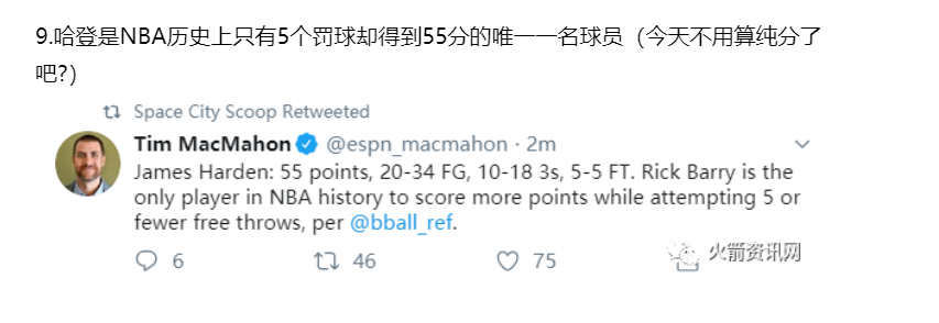 MacMahon:哈登是NBA历史上只有5个罚球却得到55分的唯一一名球员也许您还喜欢:世界杯直播 亚洲杯直播 欧洲杯直播 足球直播