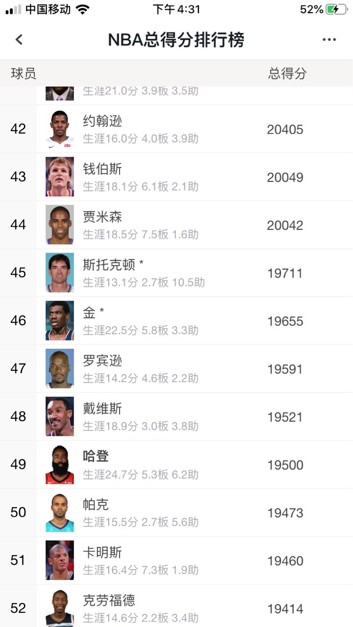 恭喜我胡子。下场比赛只要再得到22分。就将超越戴维斯。排名NBA历史第47位。也许您还喜欢:世界杯直播 亚洲杯直播 欧洲杯直播 足球直播