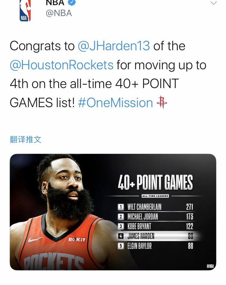 登哥今天40?场次正式达到了89次,位列历史40?场次第四位,排在前三的分别是科比的122次和乔丹的173次还有一个我就不说了,超越他不是很现实。 我大胆预测一波哈登的40?场次能够超越乔丹,大家怎么看?[敲打][敲打][敲打]也许您还喜欢:世界杯直播 亚洲杯直播 欧洲杯直播 足球直播