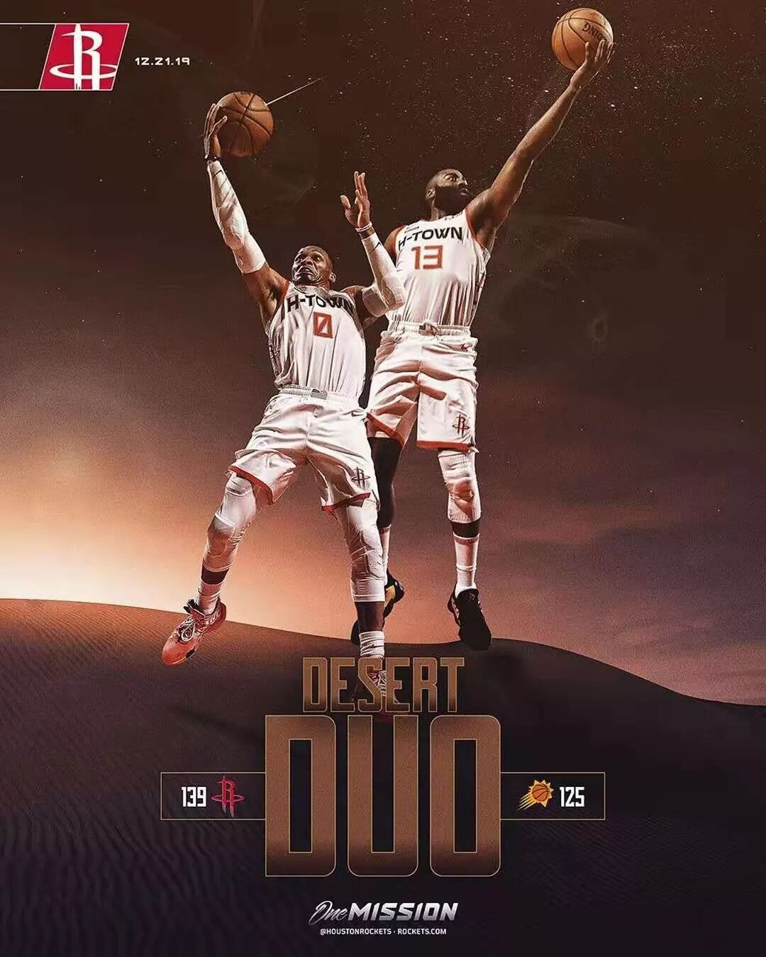 在刚刚结束的比赛中,火箭以139:125战胜太阳,取得三连胜。