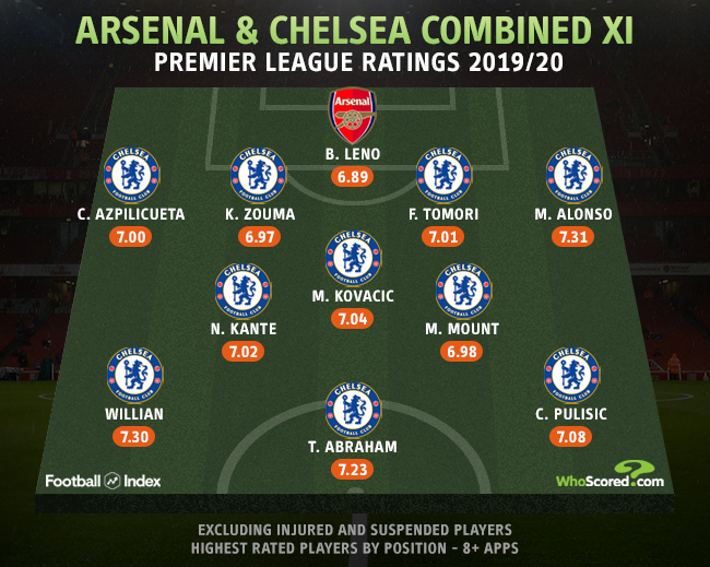 阿森纳球迷别哭。数据网站WhoScored给出了切尔西和阿森纳的综合最佳阵容。悲催的阿森纳只有一名球员入选,那就是门将莱诺。其余位置全部来自于切尔西球员。后防线从左到右依次为阿隆索、托莫里、祖马和阿斯皮利奎塔,中场是坎特、科瓦契奇和芒特,锋线三叉戟为威廉、亚伯拉罕和普利希奇。也许您还喜欢:世界杯直播 亚洲杯直播 欧洲杯直播 足球直播