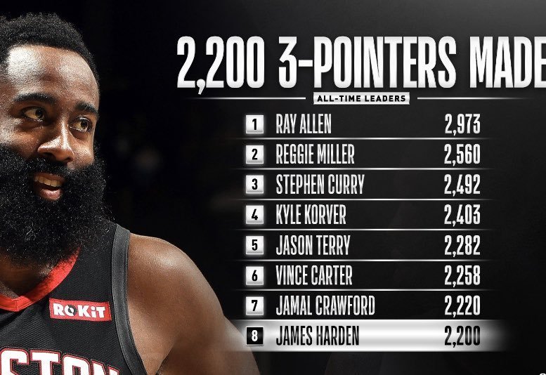 【里程碑??】目前哈登三分8投4中,职业生涯三分命中数来到2200,NBA历史上排在第8位[可爱][可爱]希望这个赛季超越库里争第一也许您还喜欢:世界杯直播 亚洲杯直播 欧洲杯直播 足球直播