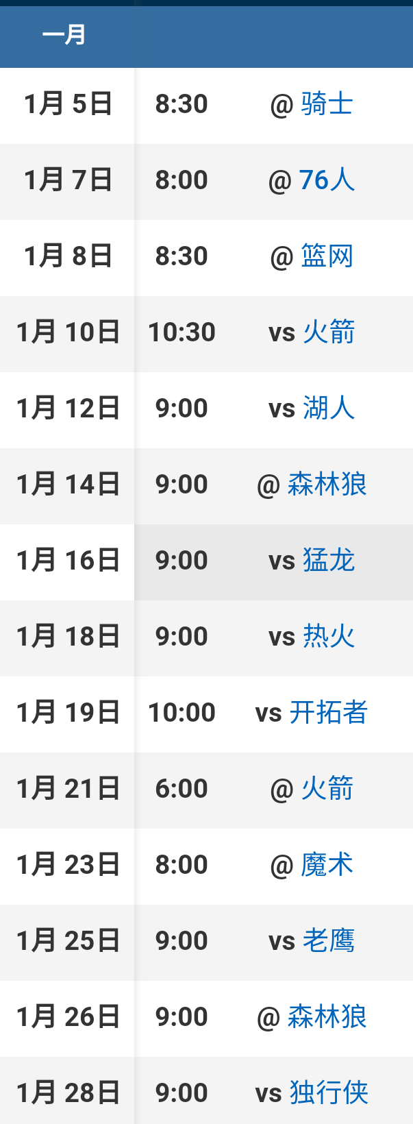 一月份好多硬茬儿,胜率如果能达到五成,那就等于成功了。。保罗加油(? ??_??)?也许您还喜欢:世界杯直播 亚洲杯直播 欧洲杯直播 足球直播