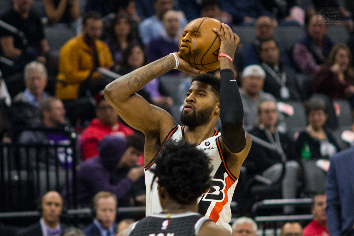 ?最近5场比赛,虽然乔治场均还有17.4分进账,但命中率已经跌倒了惨不忍睹的29.7%。??