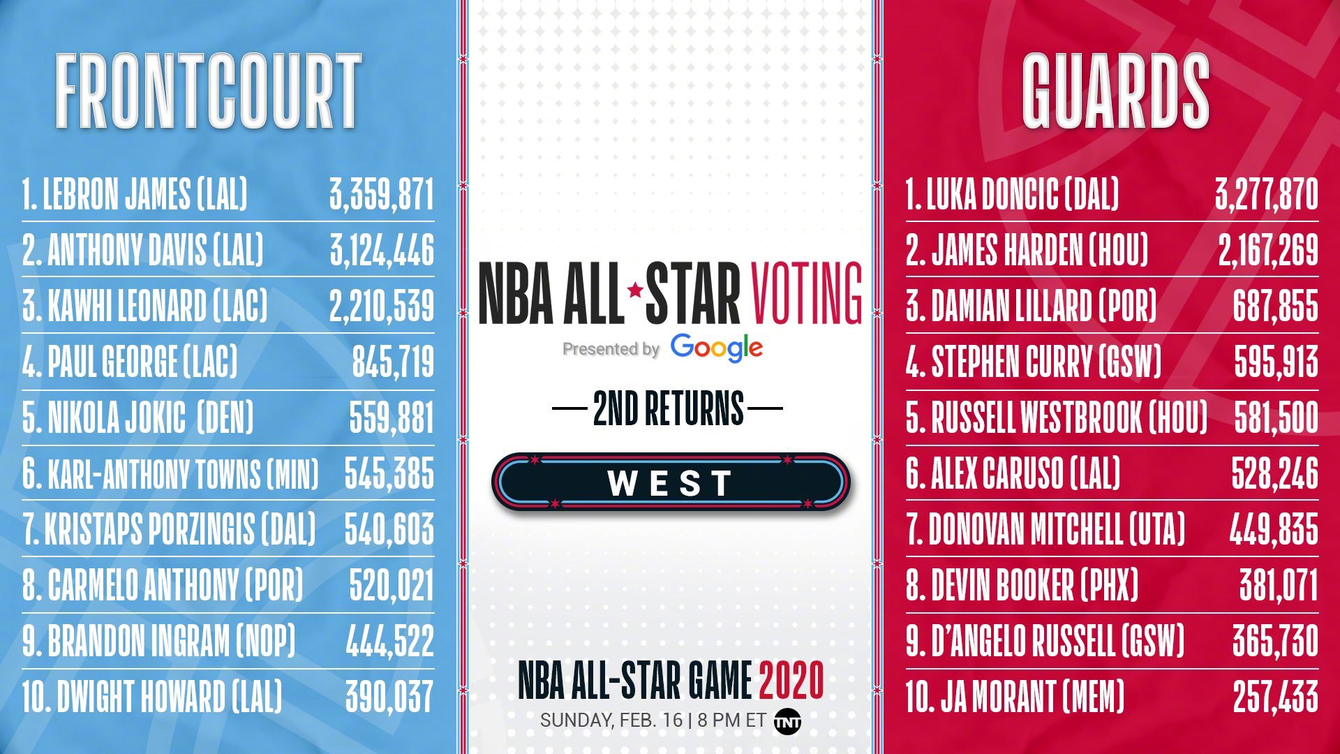 全明星二轮投票结果出炉,登威分列后场第2和第5位