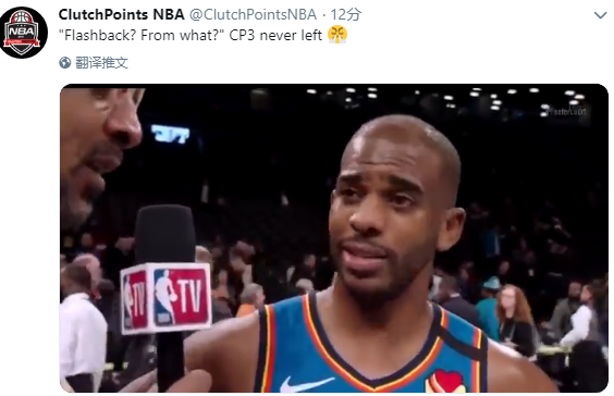 赛后,NBA TV记者采访保罗时表示他像是梦回巅峰了,保罗霸气回复自己的巅峰就没有离开过。