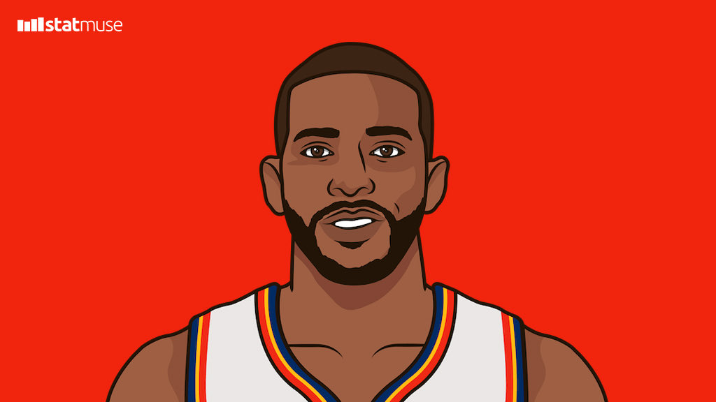 赛季至今保罗在比赛关键时刻(比赛最后5分钟分差5分内)砍下了105分,排名关键时刻得分第一。