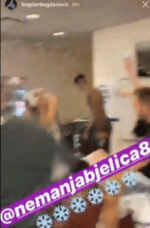 博格达赛后在INS上晒队友们在更衣室庆祝别利察绝杀的视频。