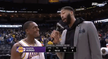 赛后,浓眉化身记者采访本场表现出色的朗多...一本正经的样子,很有记者的潜质。
