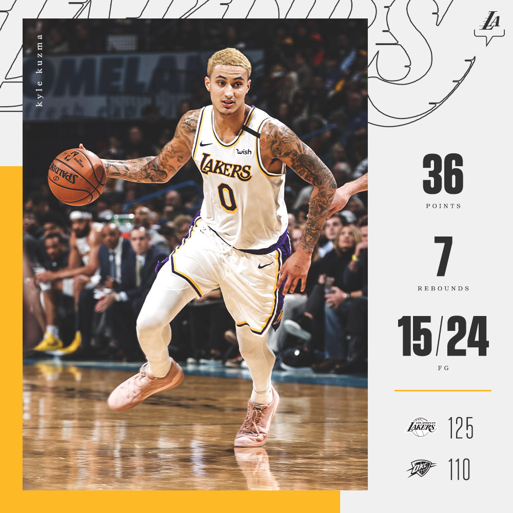 今日客场作战的湖人击败雷霆,喜提8连胜。此役詹姆斯和浓眉均未出战,库兹马和朗多带领湖人打的近来状态火爆的雷霆毫无还手之力。