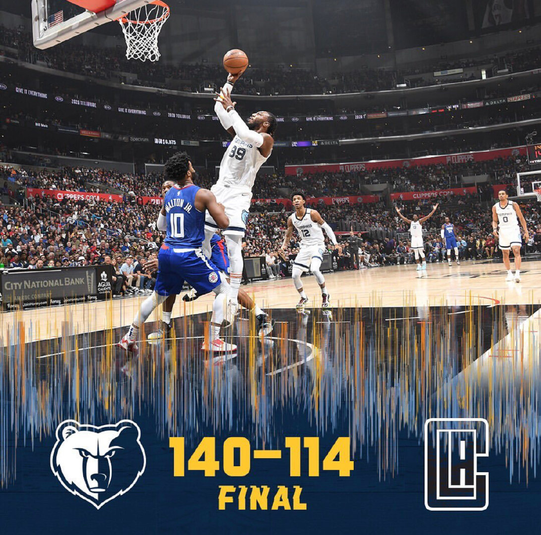 刚刚结束的一场比赛, 灰熊客场140-114大胜快船,终结对手两连胜!!!本场比赛客场作战的灰熊凭借4人得分20+,三节打花快船,末节基本成为垃圾时间,最终客场大胜对手26分。。。克劳德27分8篮板7助攻3抢断3封盖,小杰克逊24分4封盖,莫兰特22分9助攻,狄龙-布鲁克斯22分,泰厄斯-琼斯11分5助攻。。。[鼓掌][鼓掌][鼓掌]也许您还喜欢:世界杯直播 亚洲杯直播 欧洲杯直播 足球直播