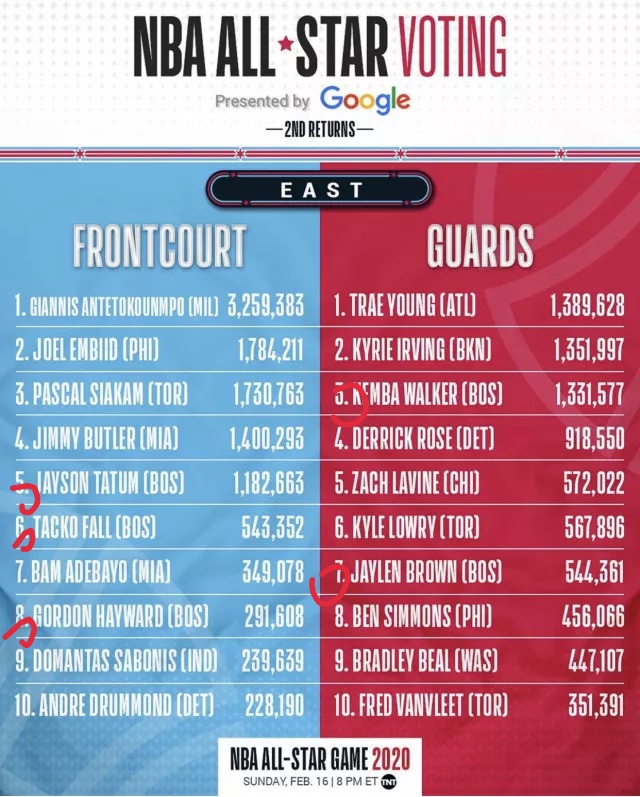 通过目前全明星投票来看,东部榜上名单中有五人是我绿军悍将,数量名列联盟第一,从中可以看出虽然腾讯体育中绿军球迷少一点。但世界范围内喜欢这只老牌强队的人大有人在。