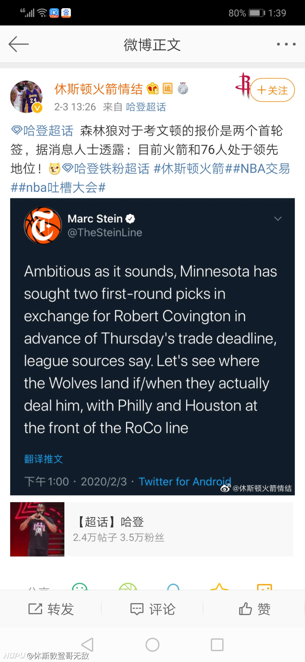 最新消息,关于科温顿交易,76人和火箭处于领先位置。本人感觉会是拿卡佩拉跟东部球队换来一个首轮选秀权和中锋,然后拿这个首轮加火箭自己的首轮再换来科温顿。这样火箭大大加强了锋线和中锋位置变弱了。这样到底是好是坏呢!也许您还喜欢:世界杯直播 亚洲杯直播 欧洲杯直播 足球直播
