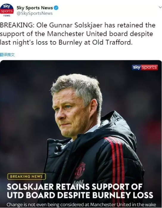 尽管如此,俱乐部还是选择相信、支持索尔斯克亚,不会考虑换帅。