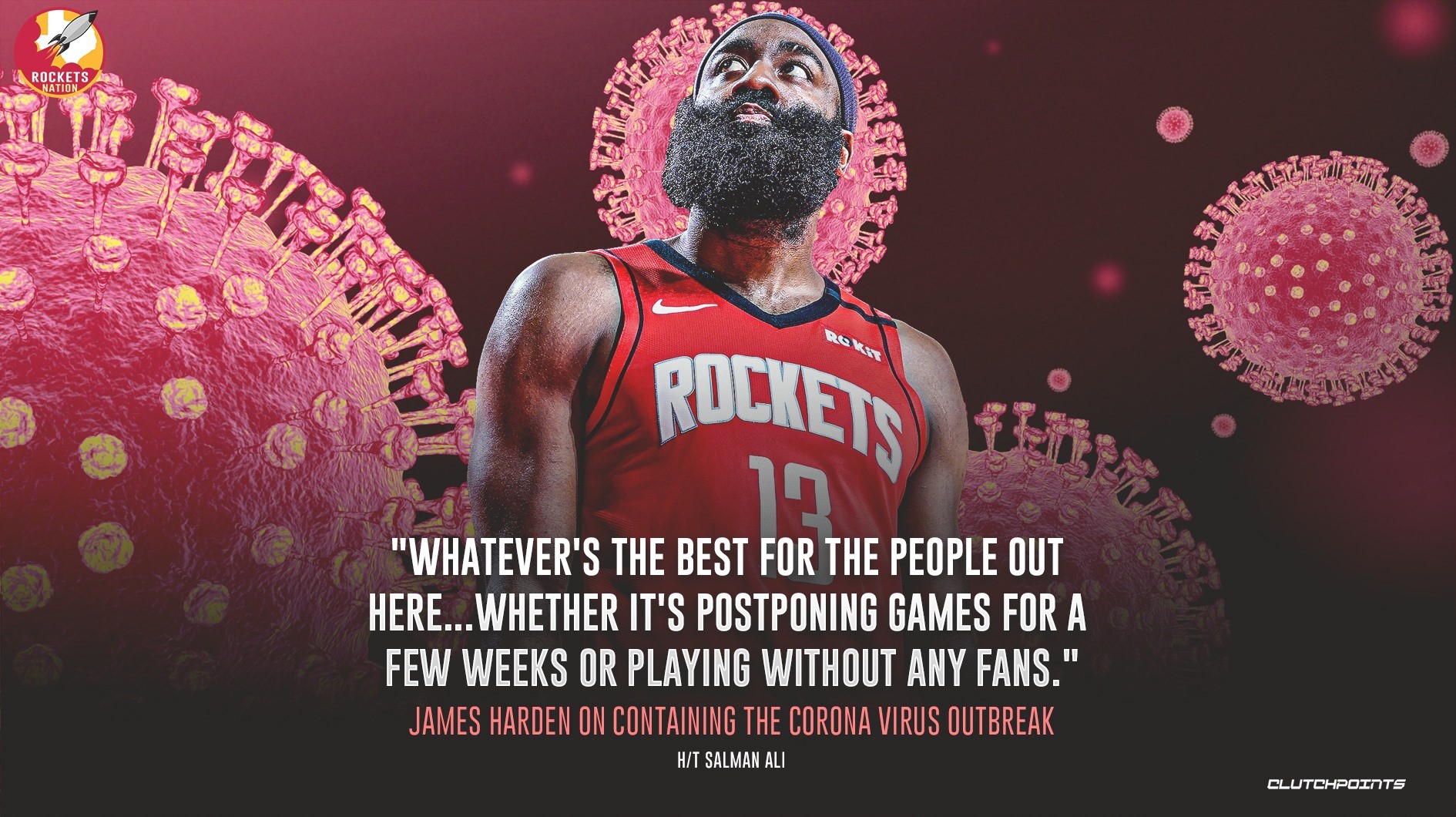 哈登支持联盟对关于新冠病毒所采取的措施:“无论什么对这里的人们来说都是最好的...无论是推迟几周比赛还是在没有球迷的情况下比赛。”