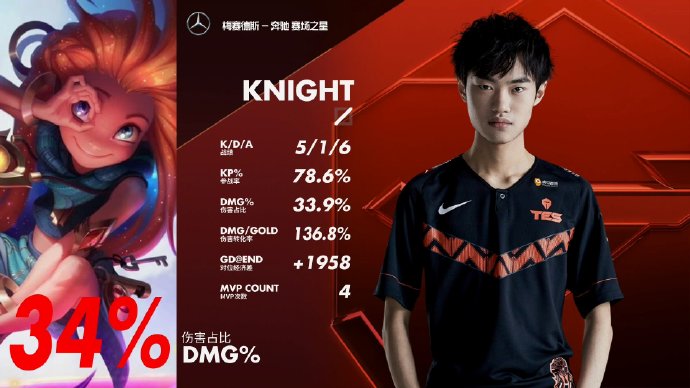 被寄予厚望的Knight也算是小小地证明了自己,在第三场关键局用全场伤害最高的佐伊获得MVP。