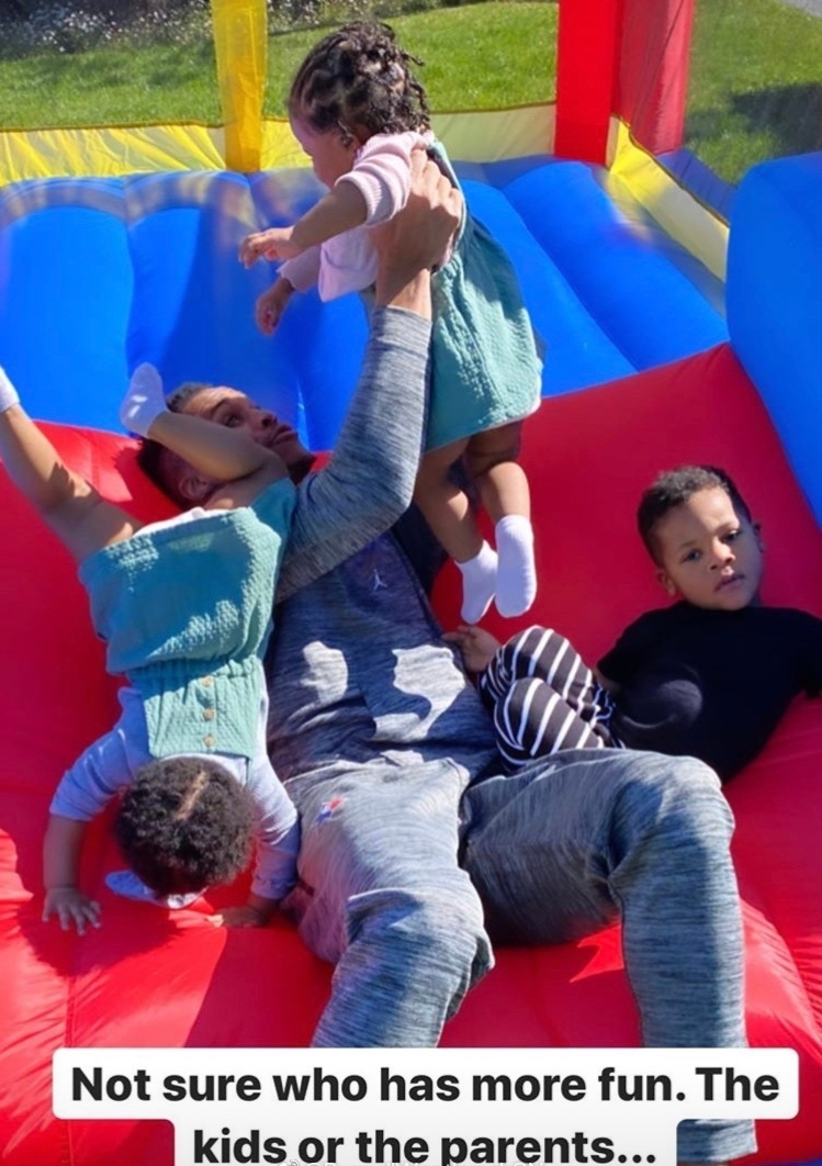 Nina更新了社交账号写到:和孩子们一起玩耍时,我不确定家长和孩子哪个更快乐。