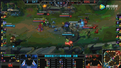 2015msi季中邀请赛决赛,EDG与SKT战至2:2平!决胜局中FAKER和厂长各自拿出了自己的最强英雄妖姬和寡妇!