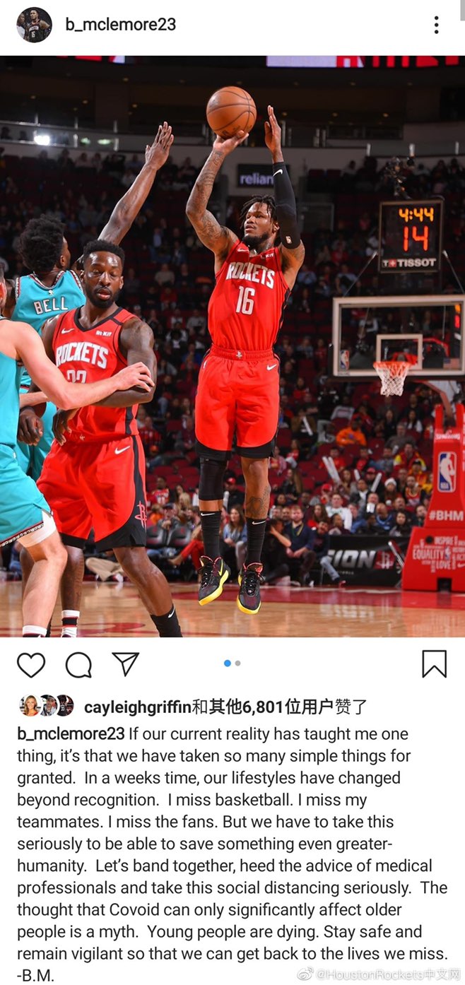 【麦克勒莫:我想念篮球,想念队友,更想念球迷[鲜花]】麦克勒莫发布ins写道:“是否我们当前现实教会了我一件事,那就是我们把这么多简单的事情视为理所当然。在过去的一个星期时间里,我们的生活方式发生了翻天覆地的变化。我想念篮球,我想念我的队友,更想念我的球迷。但我们必须认真对待这个问题,才能拯救更伟大的东西...也许您还喜欢:世界杯直播 亚洲杯直播 欧洲杯直播 足球直播