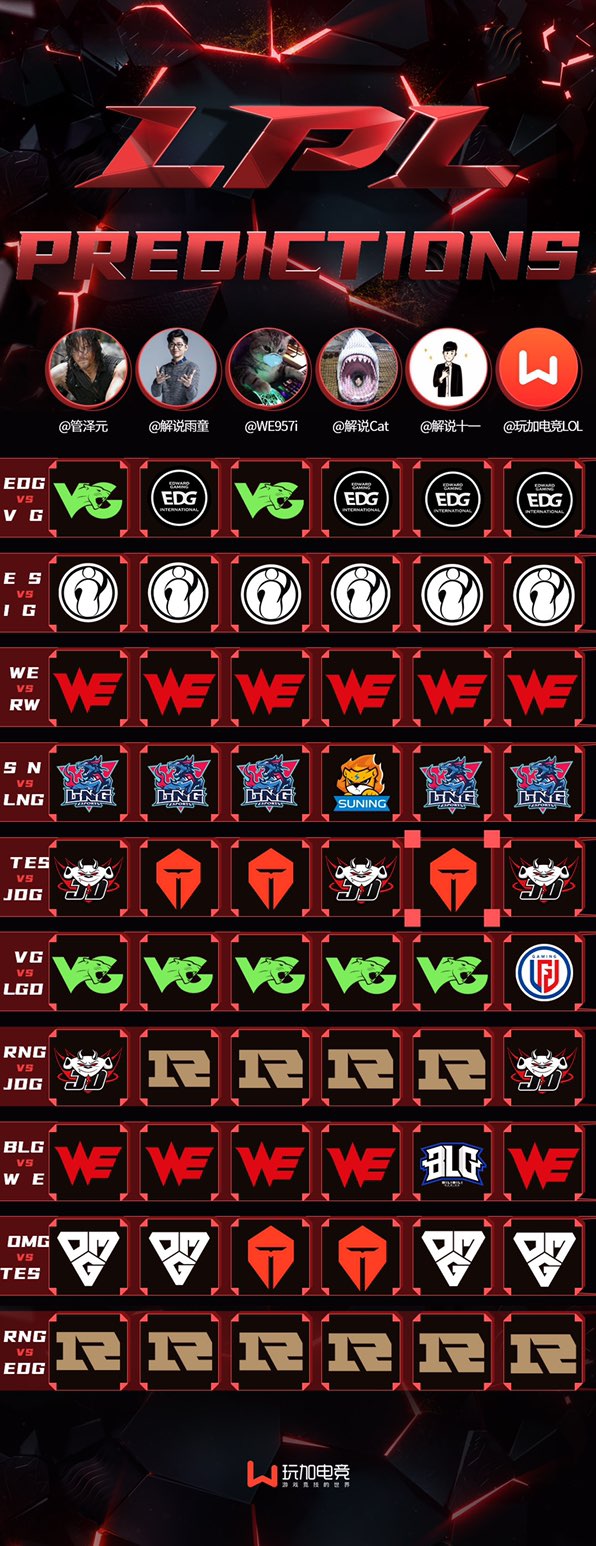 本周才第一个比赛日,随着iG负于ES,解说们出现全中的预测已经不可能了。如果把管哥按反向来算的话,还有一线希望。也许您还喜欢:世界杯直播 亚洲杯直播 欧洲杯直播 足球直播