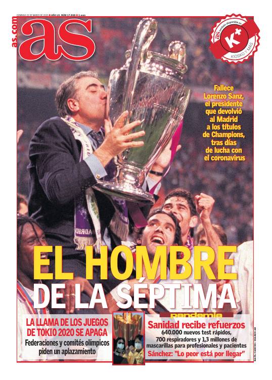 来自皇马官网的信息,前俱球乐部主席洛伦佐-桑斯因为感染新冠肺炎病毒导致呼吸衰竭和肾衰竭而去世,享年76岁。?桑斯的儿子接受媒体采访时表示,他的父亲与新冠肺炎病毒斗争了8天,当他感到呼吸困难时,仍不想给医院增加负担,说自己只是一点小发烧,不想让医院陷入瘫痪。?桑斯对于皇马的功勋,可以用一句简单的话来概括...也许您还喜欢:世界杯直播 亚洲杯直播 欧洲杯直播 足球直播