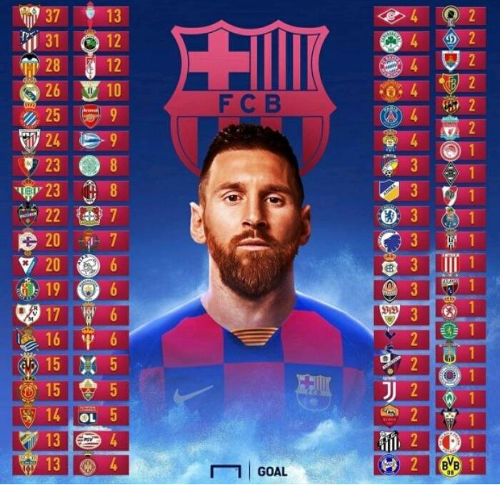 下图是被梅西攻破过球门的俱乐部以及进球数,梅西最爱虐塞维利亚[晕]西甲之外,梅西与阿森纳是真爱[坏笑]也许您还喜欢:世界杯直播 亚洲杯直播 欧洲杯直播 足球直播