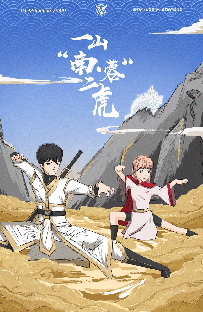 一山南蓉二虎:南:指南京,蓉指成都,也是成都AG超玩会与南京Hero久竞喻指一山难容二虎,此战也是两个队伍的“争霸”之战南京Hero久竞 冲[握拳]