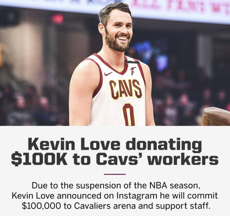 凯文-乐福更新了个人的Instagram,宣布将通过自己的基金会为骑士工作人员捐赠10万美元!