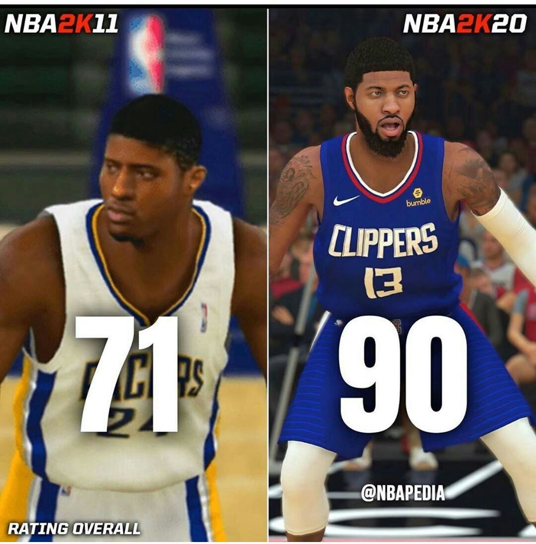 乔治的新秀赛季场均仅7.8分3.7篮板1.1助攻,在2K11中能力值为71