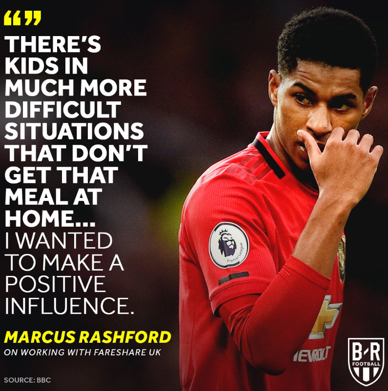 3、做好事,说好话,存好心。拉什福德正联合慈善组织,为学校关闭后吃不到免费午餐的孩子们提供食物。
