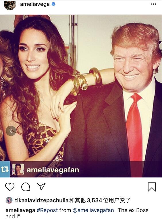 76人球员霍福德的妻子阿米莉亚-维加(Amelia Vega)曾在2003年环球小姐大赛中夺得冠军,在其早年社交媒体上发布的一张与现任美国总统特朗普的合影中写道:前老板和我。